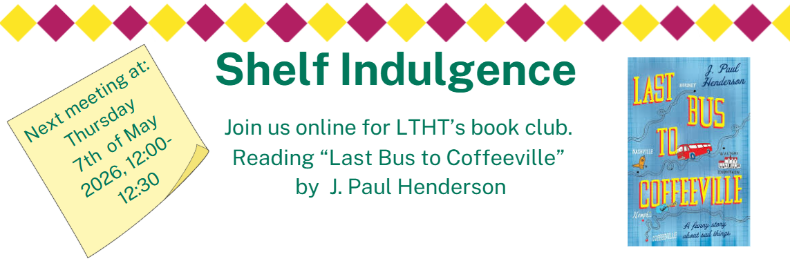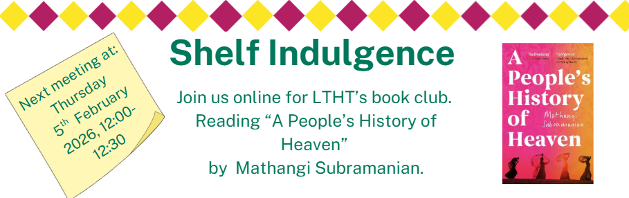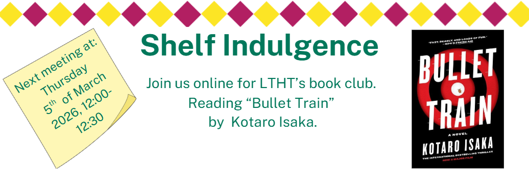 Join us every first Thursday of the month at 12 o'clock online for 30 minutes , to discuss books from a vareity of genres. Whether you are looking to meet people from different deparments, get pushed out of your literature comfort zone or just need a mental wellbeing break, if you are a LTHT staff member this group could be for you!